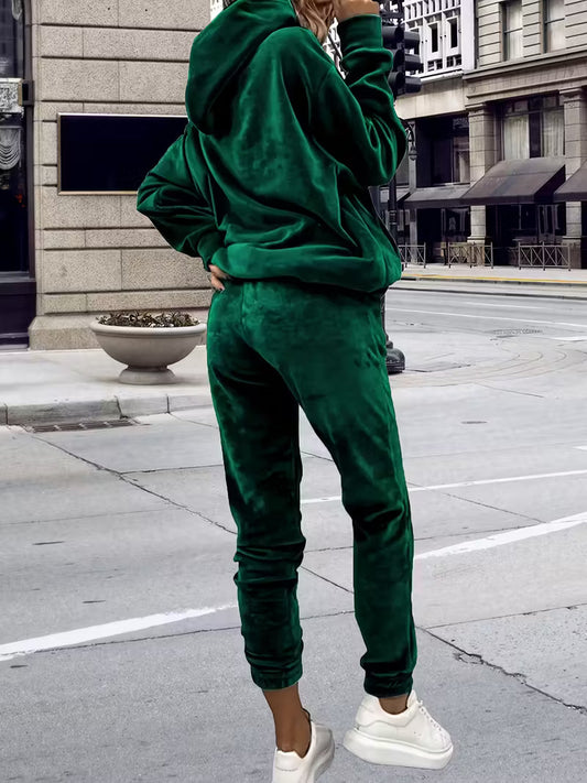 x. Trening Catifea Verde - Set 2 Piese: Hanorac + Pantaloni