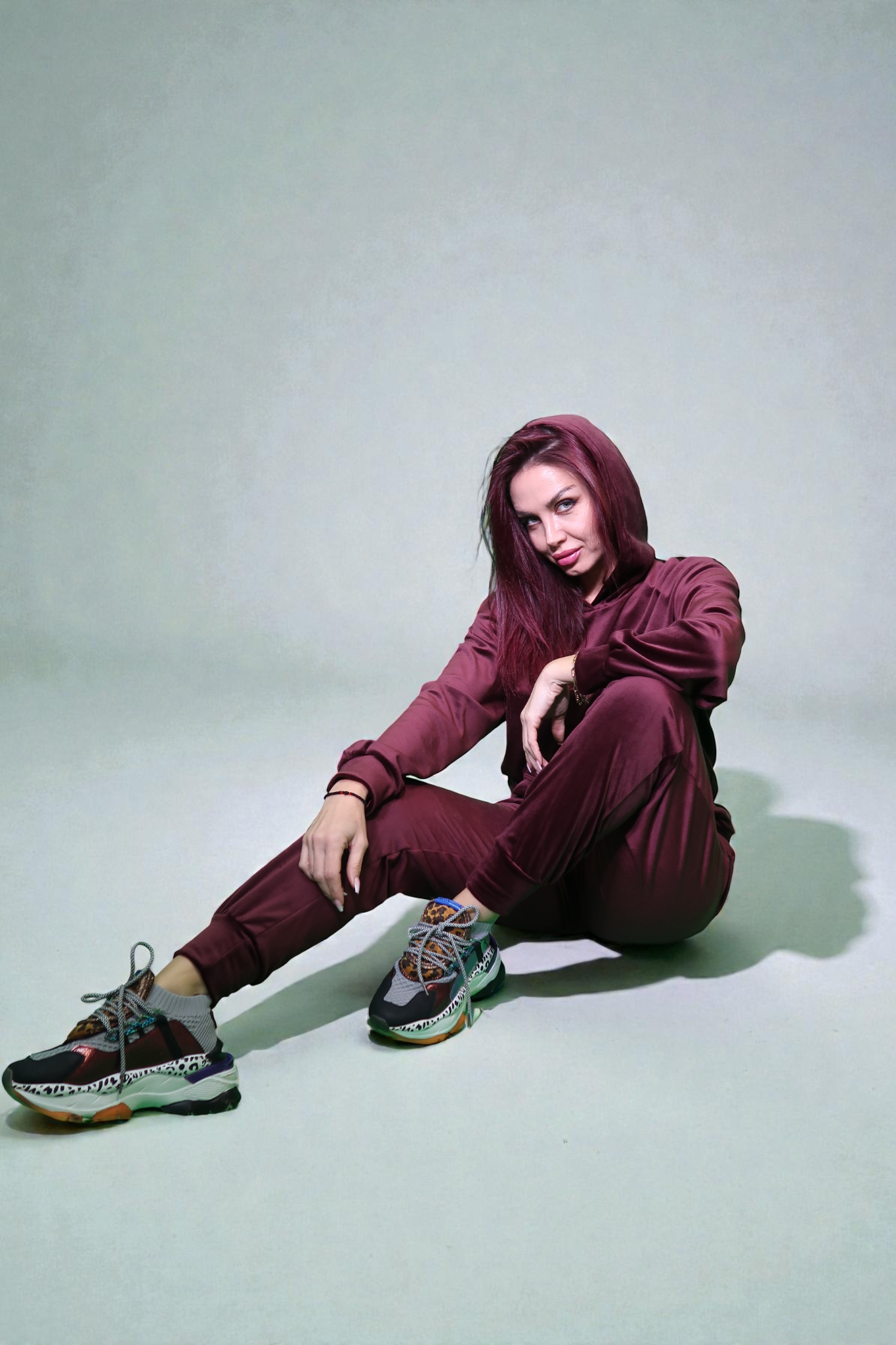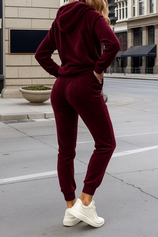 x. Trening Catifea Bordo - Set 2 Piese: Hanorac + Pantaloni